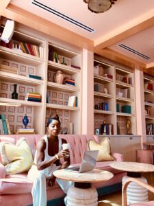 For my birthday I decided to do a Solo Trip to Miami. Since my birthday is in September, I wanted to close out summer with a beach bang! However, while I was there I did get a little work done in this adorable library. It was so perfectly stylized that I couldn’t help but get in a few fashionable shots.